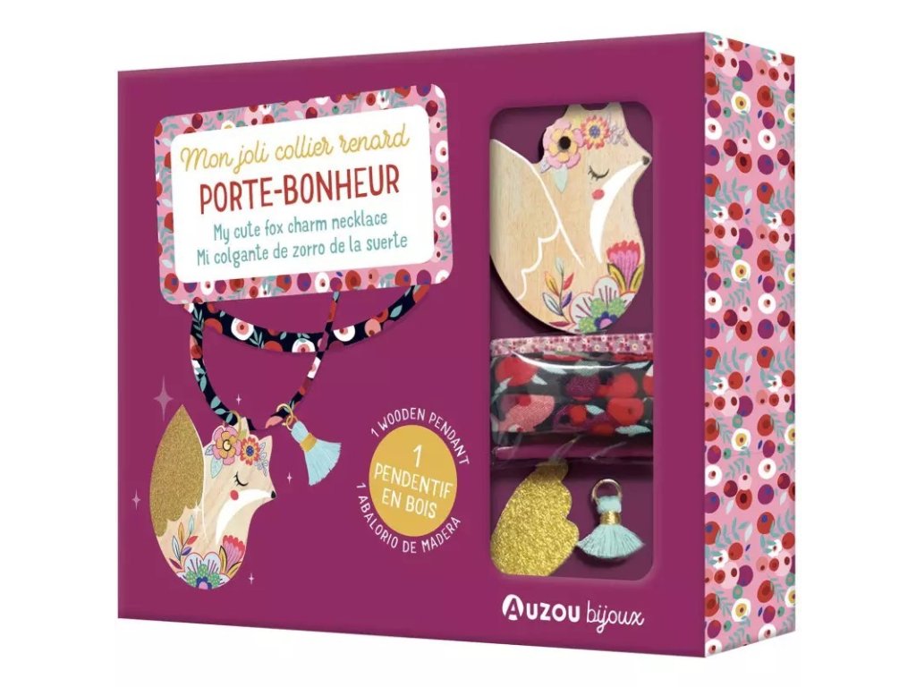 AUZOU Náhrdelník šťastia - Drevená Líška je kreatívna sada na výrobu šperkov, ktorá prichádza v peknom darčekovom balení. Obsahuje roztomilý drevený prívesok v tvare líšky, ktorý si deti môžu dotvoriť a ozdobiť pompom podľa vlastnej fantázie.