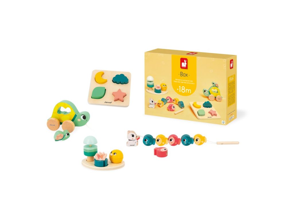 Dobrodružstvá čakajú na všetky deti s edukačným Janod boxom - kompletné balenie obsahuje 4 hračky navrhnuté s ohľadom na prvé rané učenie detí. Tento box bol vyvinutý v spolupráci s odborníkom, aby pomohol postupne podporovať psychomotorický vývoj vášho dieťaťa a budúce získavanie zručností.