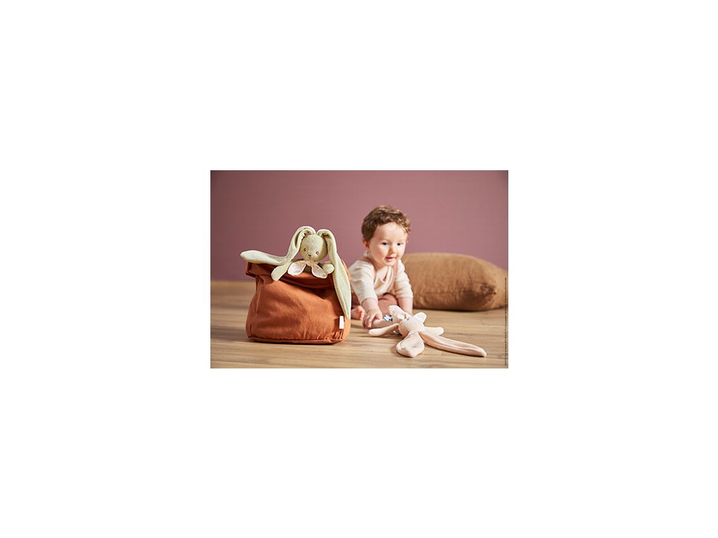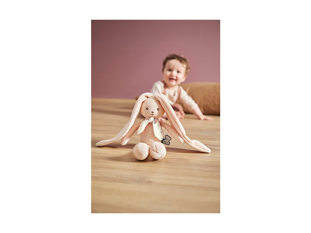 Možno ho prať v práčke na 30°, jednoducho ho vyperte samostatne, bez použitia aviváže, odstraňovačov škvŕn alebo iných prísad, aby zostal čistý a svieži. Táto bábka zajačika svojou jemnou farbou dodá izbičke vášho dieťaťa nádych veselosti.