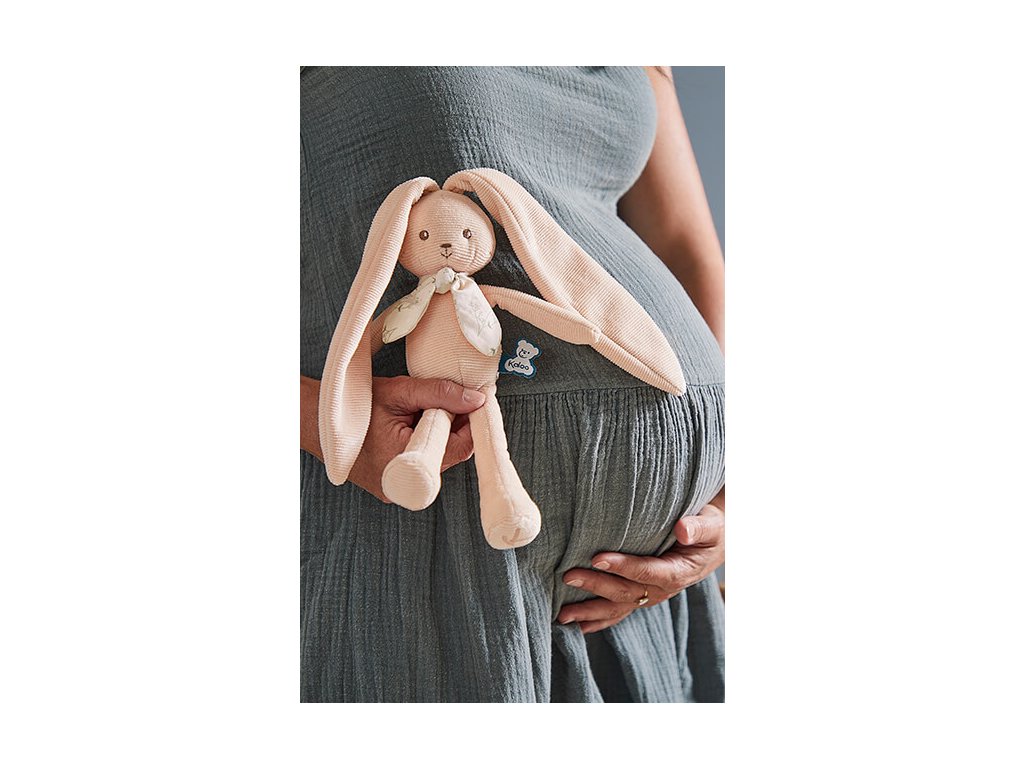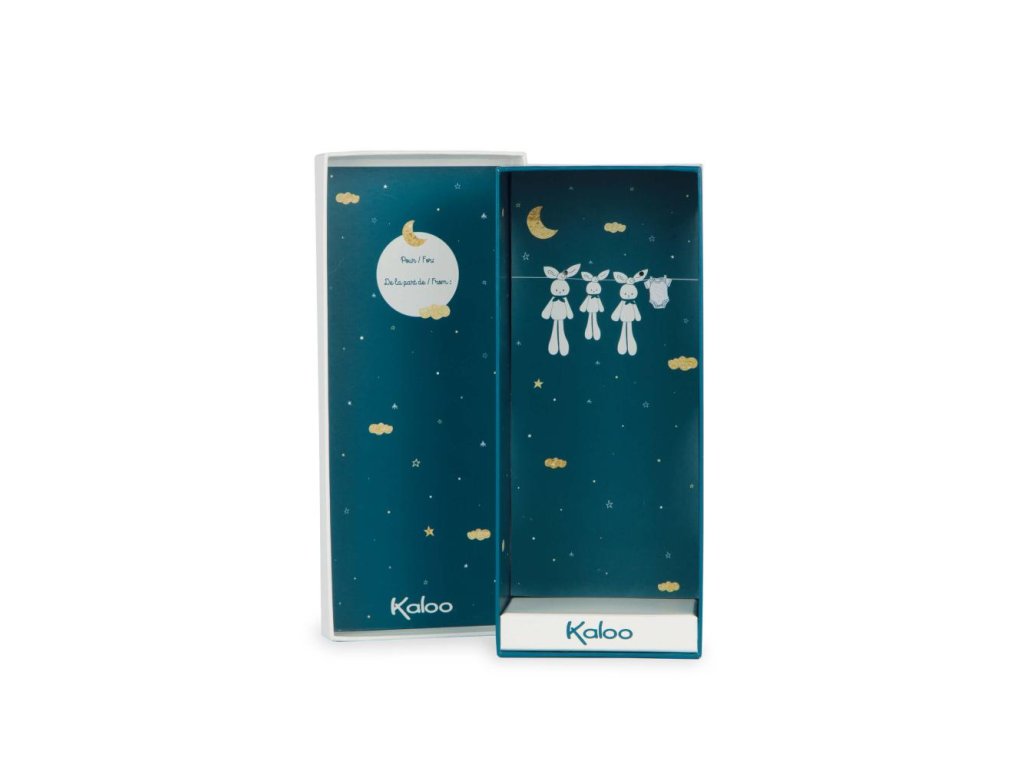 Vhodné pre bábätká od narodenia, jeho dlhé uši ich zavinú do nežných objatí, aby s nimi zdieľali sladké chvíle. Táto bábka zajačika Kaloo je oblečená s jemne potlačenou šatkou, ktorá jej už tak rozkošnému vzhľadu dodáva nádych štýlu. So svojimi dlhými nohami a veľkými ušami je ako stvorený na maznanie a hranie.