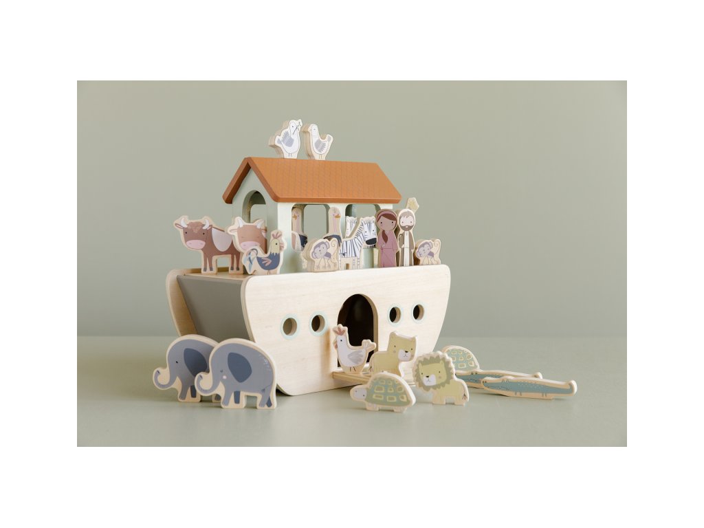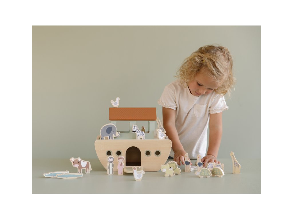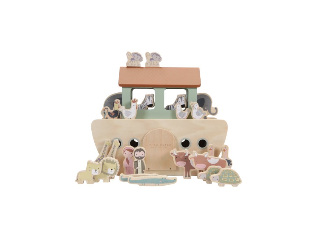 S touto nádhernou Noemovou archou od Little Dutch sa deti môžu ponoriť do známeho príbehu a vytvoriť si vlastné dobrodružstvo. Pomôž Noemovi a jeho žene priviesť zvieratká po pároch na archu a vyplávajte spolu na cestu za záchranou. Drevená hračka obsahuje 31 dielikov, vrátane odnímateľnej paluby, otváracích dvierok a bohatej zostavy zvieratiek – od levov, slonov a opíc až po holubice a krokodíly.