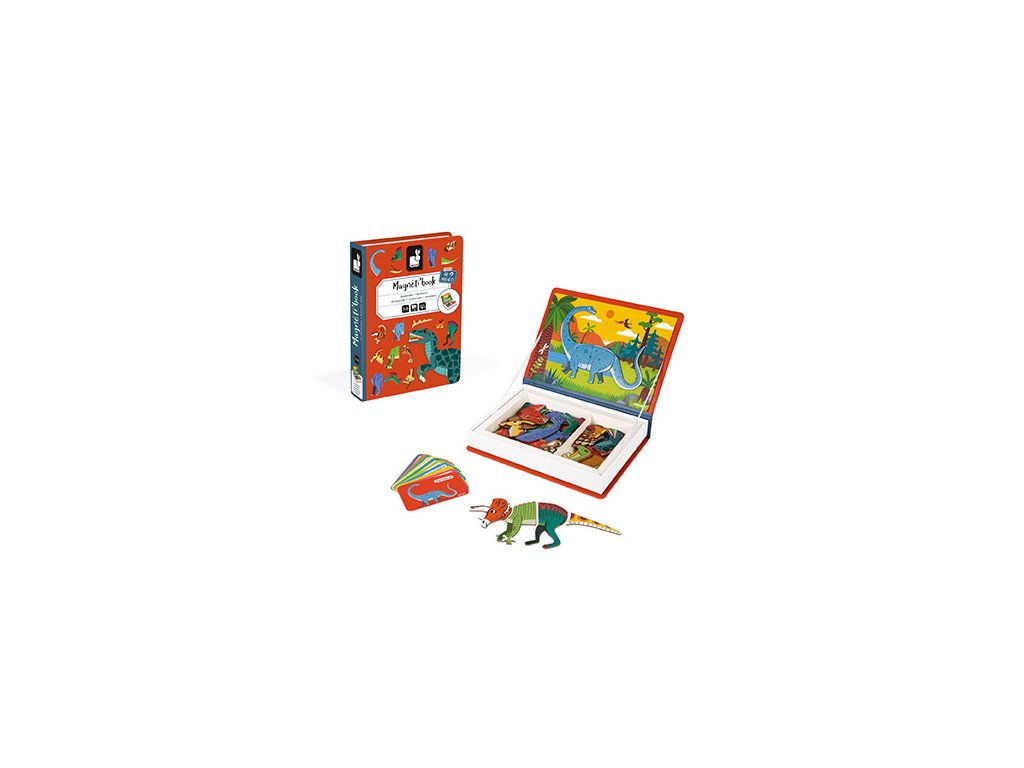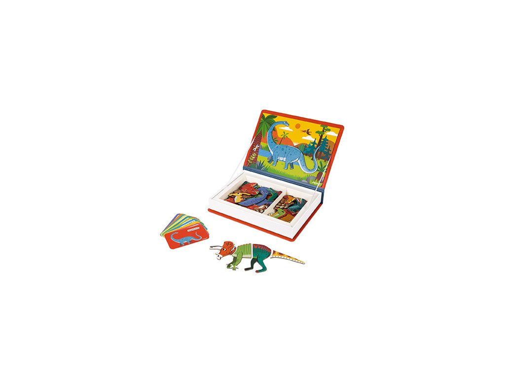 Zabavte vaše deti skladaním obrázkov z magnetických dielikov podľa predlohy. Magnetická kniha - magnetibook je krásna vzdelávacia hračka vhodná pre deti od 3 do 8 rokov. Magnetická skladačka v tvare knihy má pestrofarebný motív, ktorý detí zaujme na dlhé hodiny. Obsahuje predlohové karty a magnetky, pomocou ktorých sa na magnetické pozadie knihy vytvára obrázok podľa vybranej karty. Deti môžu použiť aj fantáziu a skladať si rôzne obrázky podľa vlastnej predstavivosti. Magnetky je možné používať aj na magnetické tabule. Praktické balenie umožňuje hračku pohodlne prenášať, čím sa deti s ňou zabavia nielen doma, ale aj na dlhých cestách autom alebo lietadlom. Magnetické kniha pre deti je krásna nadčasová hračka pre každé dieťa, ktorá sa bude páčiť niekoľkým generáciám, vyrobená z kvalitných materiálov a zdravotne neškodných farieb. Obsahuje 40 magnetiek a 10 kariet pre vytvorenie dinosaurov a strašidelných tvorov.
