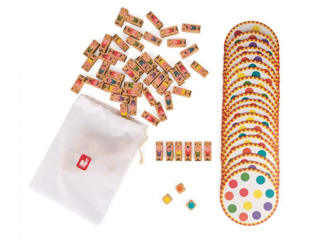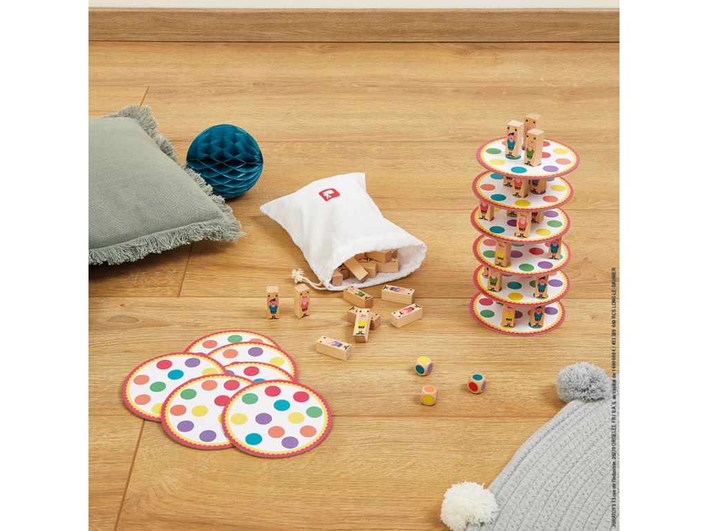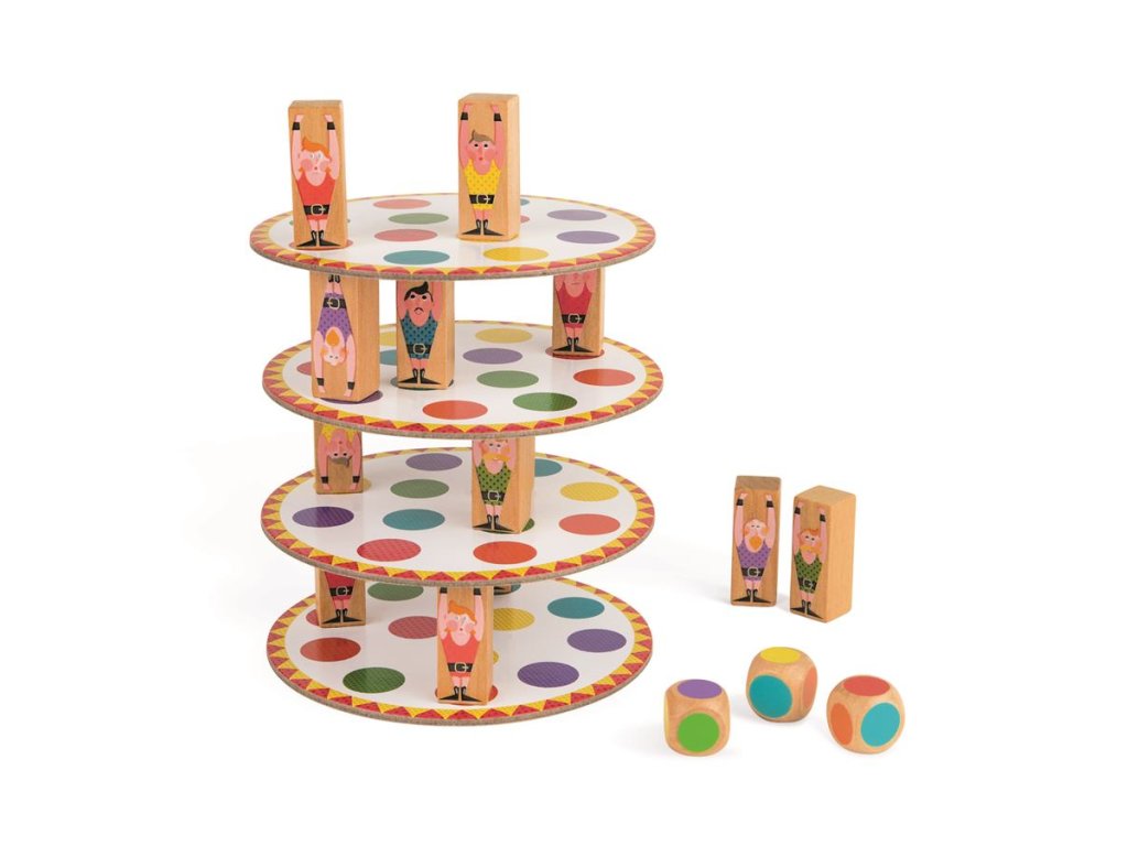 Zábavná spoločenská hra pre deti na zdokonalenie zručností je určená pre deti vo veku od 5 rokov, pre 2 - 8 hráčov.. Hra je výborná pre všetkých, ktorí chcú potrénovať svoje strategické myslenie, motorické schopnosti a najmä sústredenosť Hádžte kocky a strategicky umiestnite svojich akrobatov tak, aby ste vytvorili čo najvyššiu vežu. Prvá osoba, ktorá zrazí vežu prehráva!